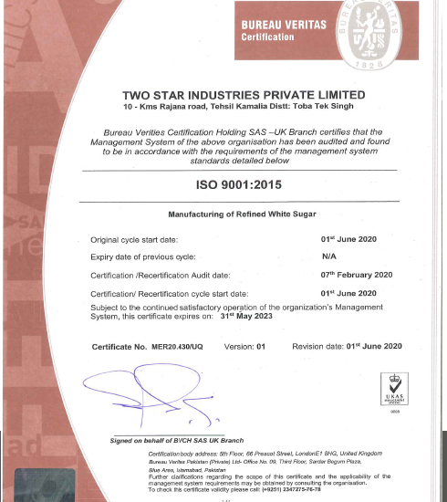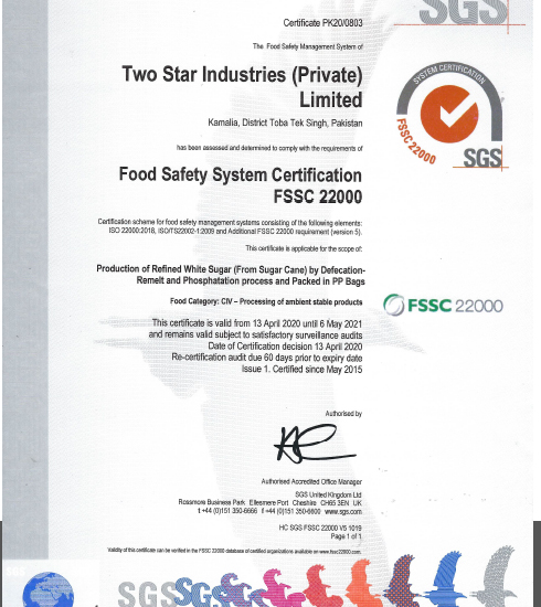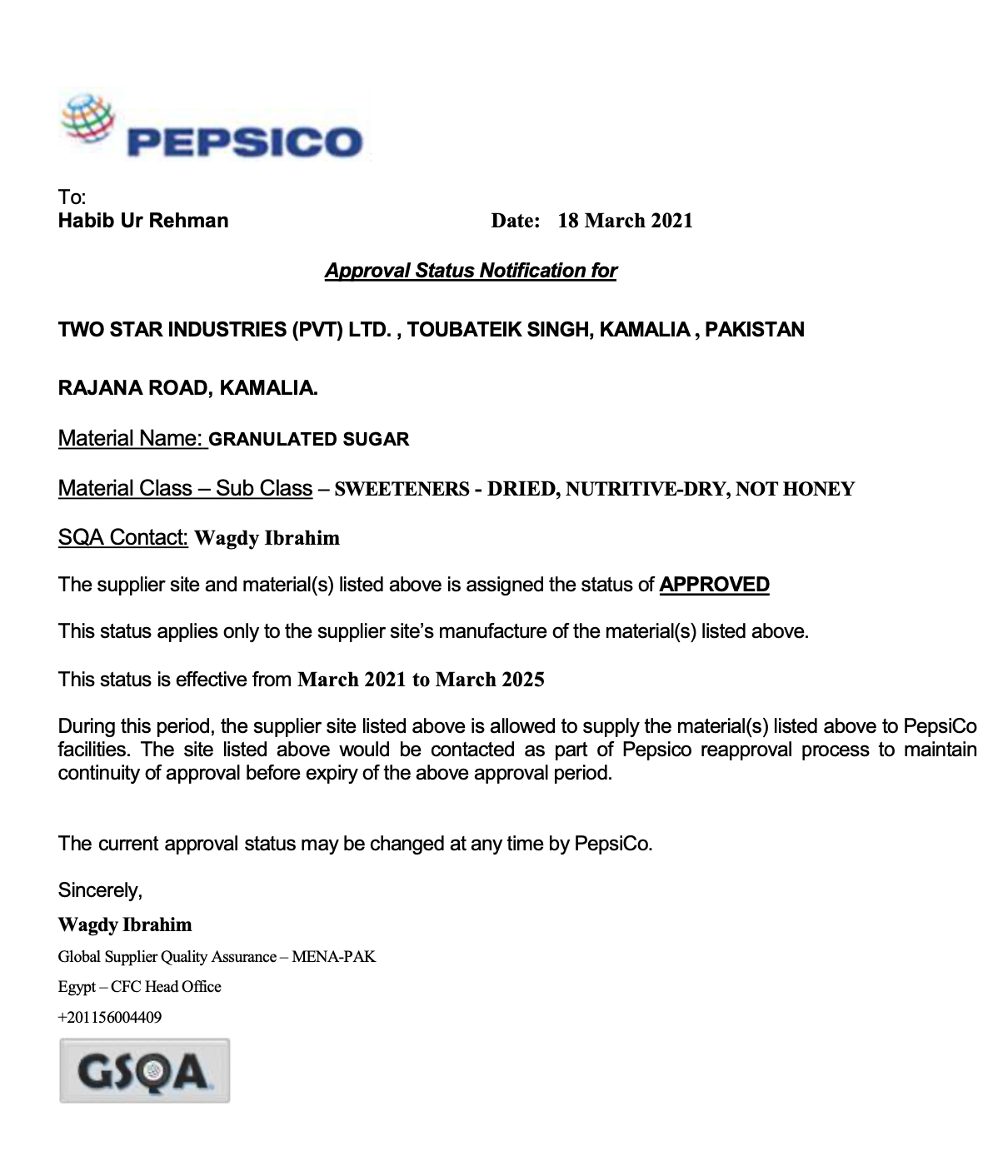 Two Star Industries (Private) Limited, formerly Kamalia Sugar Mills Limited, is operational since 1976 and is amongst the top five mills in Punjab in sucrose recovery from sugarcane.